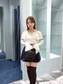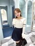 153cm|骨格ストレート|イエベ春 【tops】 ビッグカラーが可愛いトップス✨ 袖のChicoのロゴがポイントです♡ 【bottom】 トレンドのバルーンスカート◎ サテン素材なので上品に着ていただけます♡