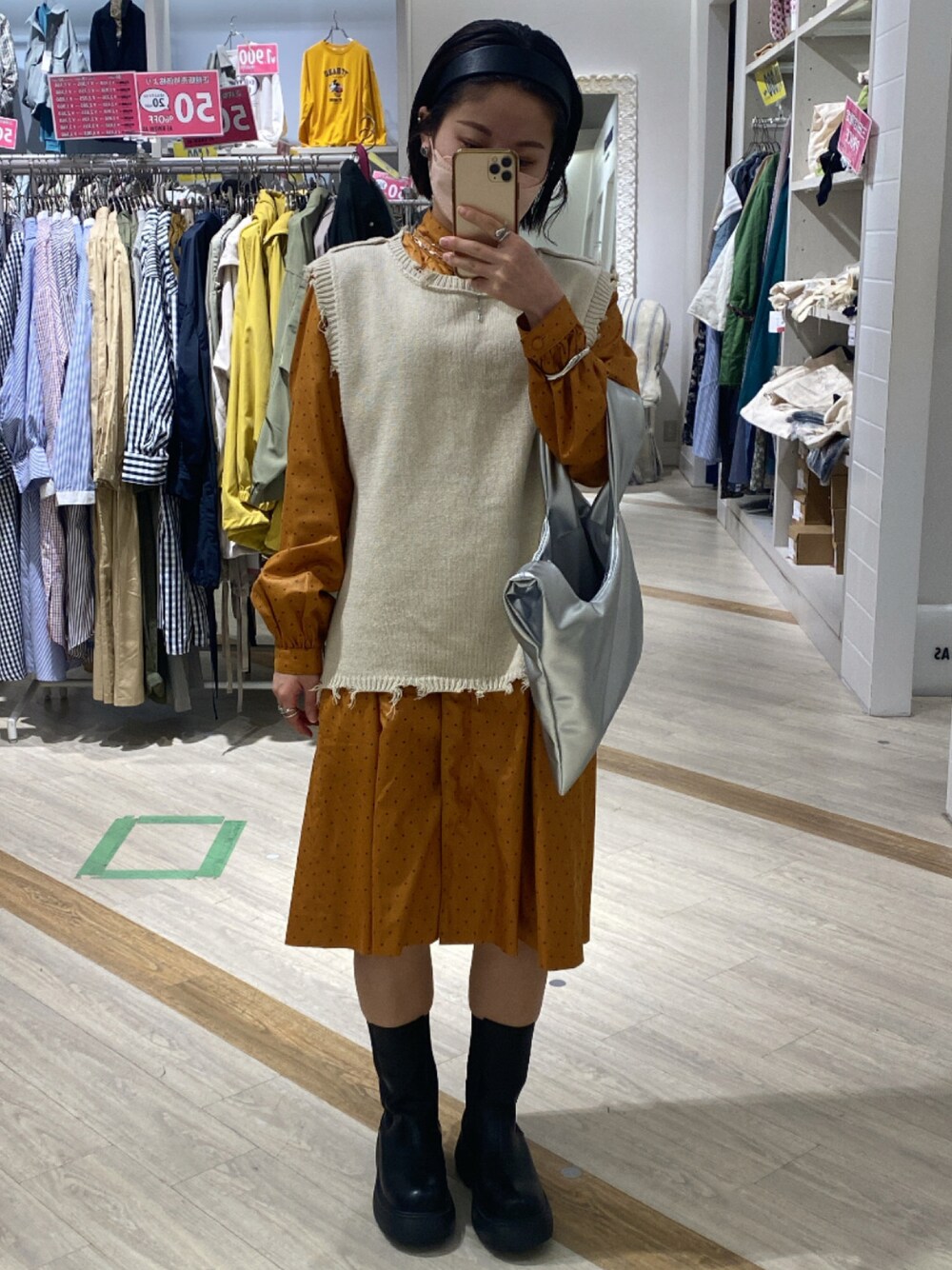 雨の日コーデ☔️ ワンピースは古着屋さんで見つけて色が可愛くて買ったものです!