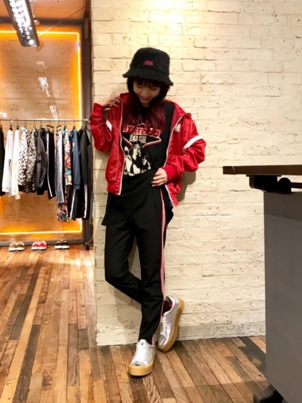Q(HYSTERIC GLAMOURなんばパークス店)のその他パンツ「STAR CIRCLE WOMAN プリント トラックパンツ」を使ったコーディネート