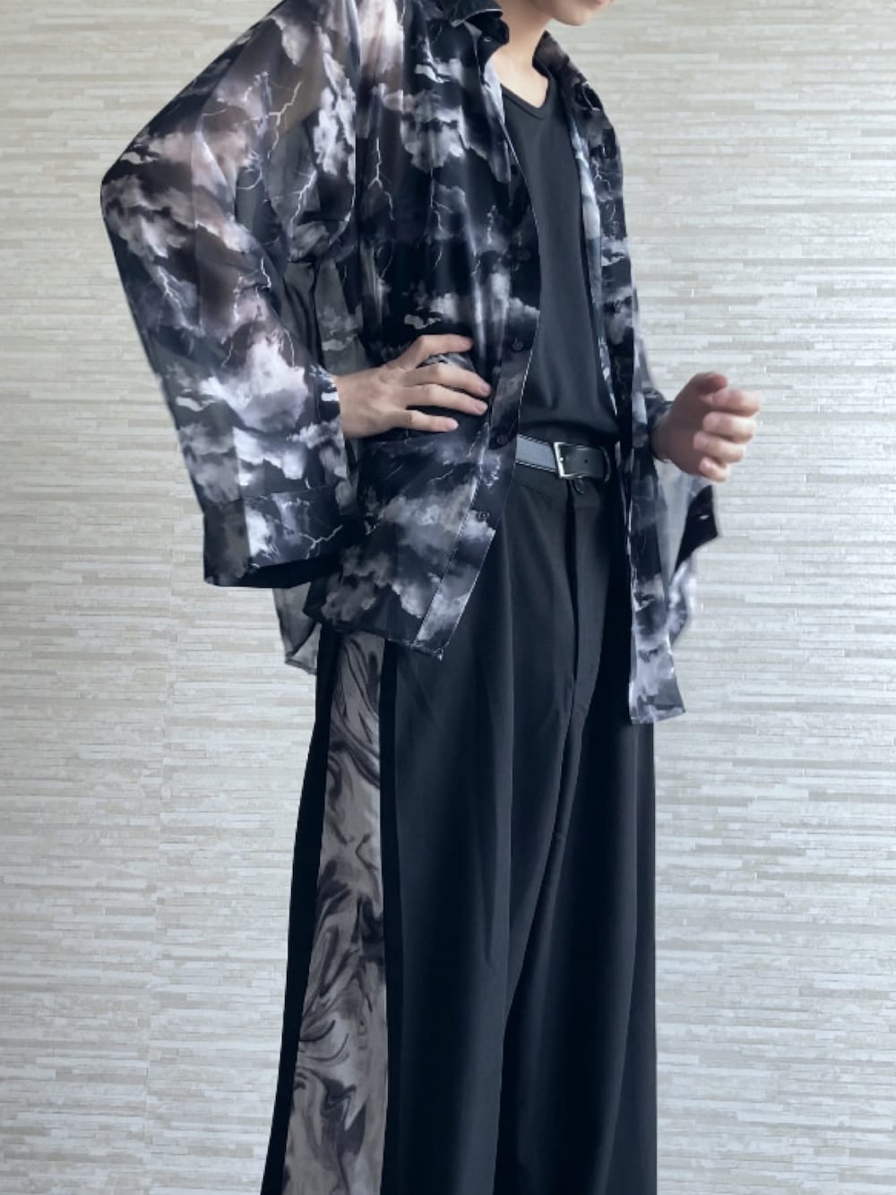 龍哉(02s.hi_)のシャツ/ブラウス「2wayアームスリットアソートシアーシャツ」を使ったコーディネート