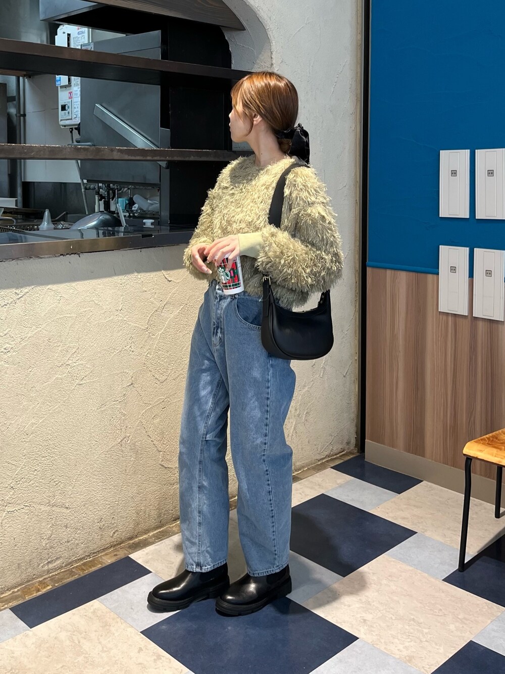 フリンジデザインが可愛い主役級ニット♡ デニムと合わせてカジュアルにコーデを組みつつ、ブーツで大人っぽさも出しました◎