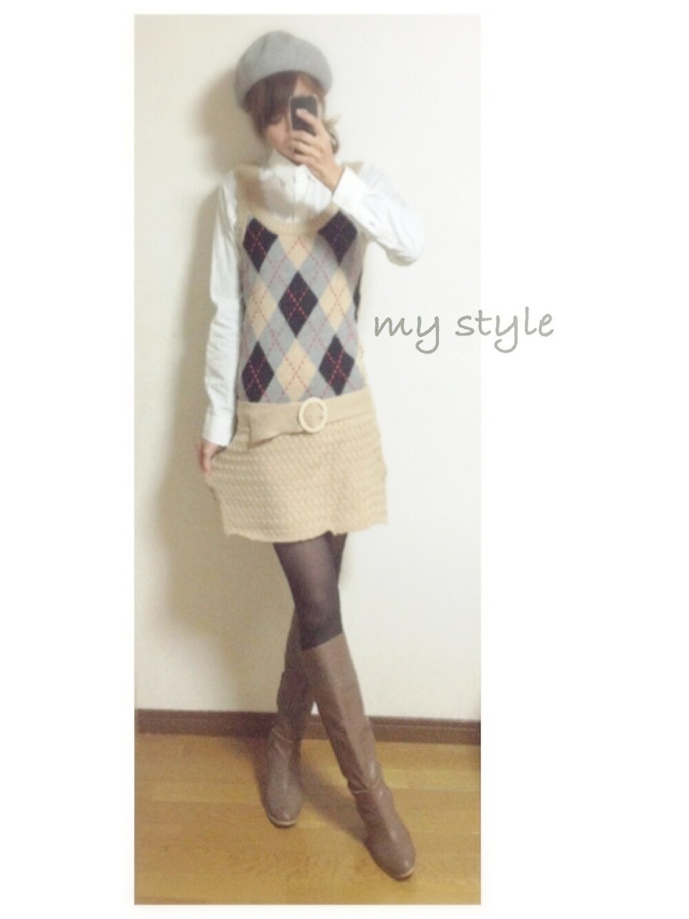 シャツ…gu ベレー帽…LBC アーガイル柄に赤と黒がはいってます。 クラブ行って踊りまくりたい