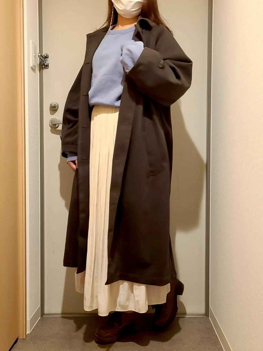 ブラウン×水色コーデはお気に入り💖 crispの可愛いコート大活躍です😍