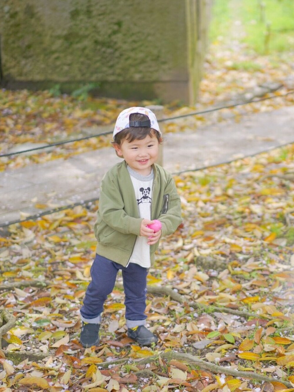 春のお散歩コーデ😊 2歳1ヶ月なので走り回り、よくこけます😂