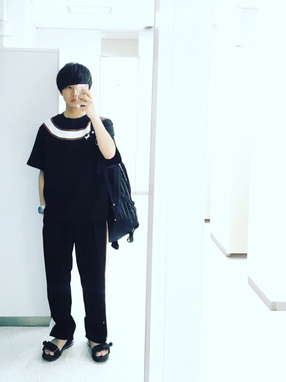 CULLNIの可愛い目セットアップです!👕👖 パンツはガンガン使ってたんですけど、トップスの方は勿体ぶっちゃっててやっとおろしました、、(笑) Name. × Tomo&Co のサンダルは相変わらずヘビロテですね⚡️⚡️⚡️ 今日はバイトで荷物が多いのでリュック🚶🎒