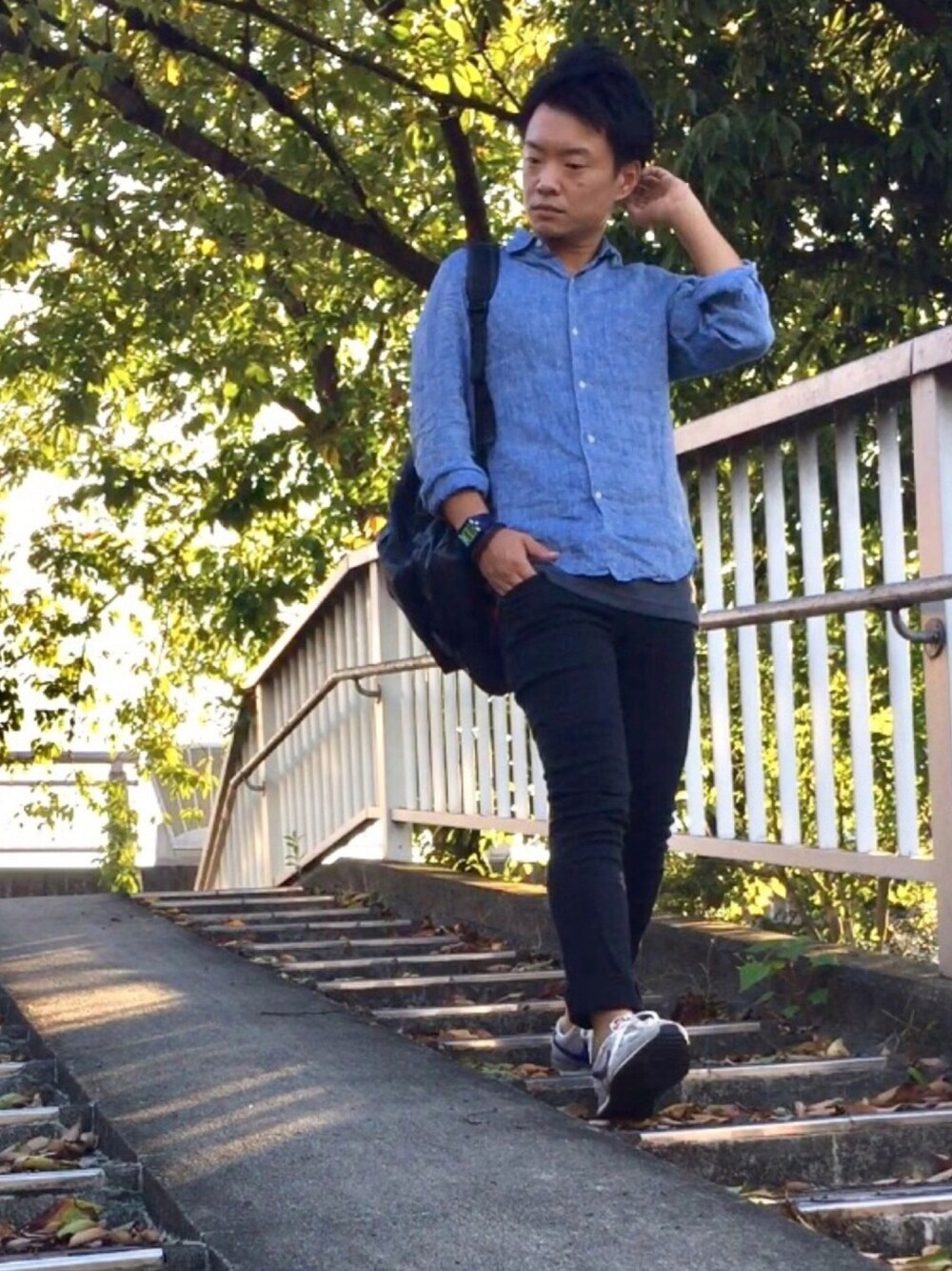 ご覧いただきありがとうございます🙇 残暑が厳しいー☀️ 名古屋は日中またまだ暑いです💦💦 きれいめなブルーのシャツに、スニーカーとリュックでカジュアルなアイテムを合わせました✌️ ◎サイズ◎ シャツ:S タンクトップ:L パンツ:28 シューズ:26.5 このコーデが良かったら いいねお気に入り フォロー していただけると嬉しいです😆 よろしくお願いします❗️