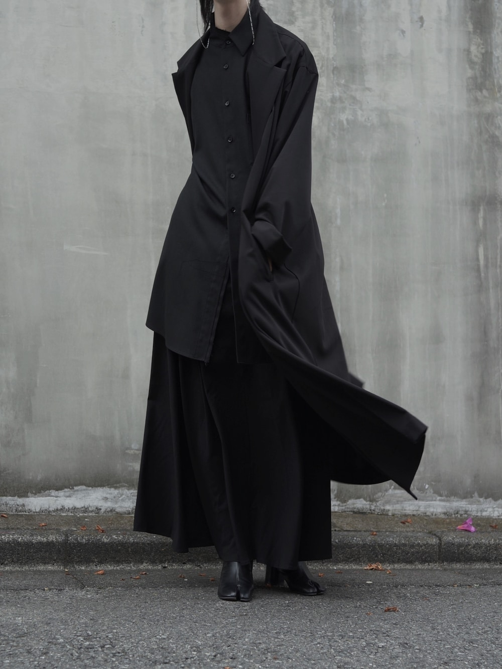【brand】 shirt: Ground Y outer:Yohji Yamamoto skirt: GGD shoes: Maison Margiela Watch: ISSEY MIYAKE