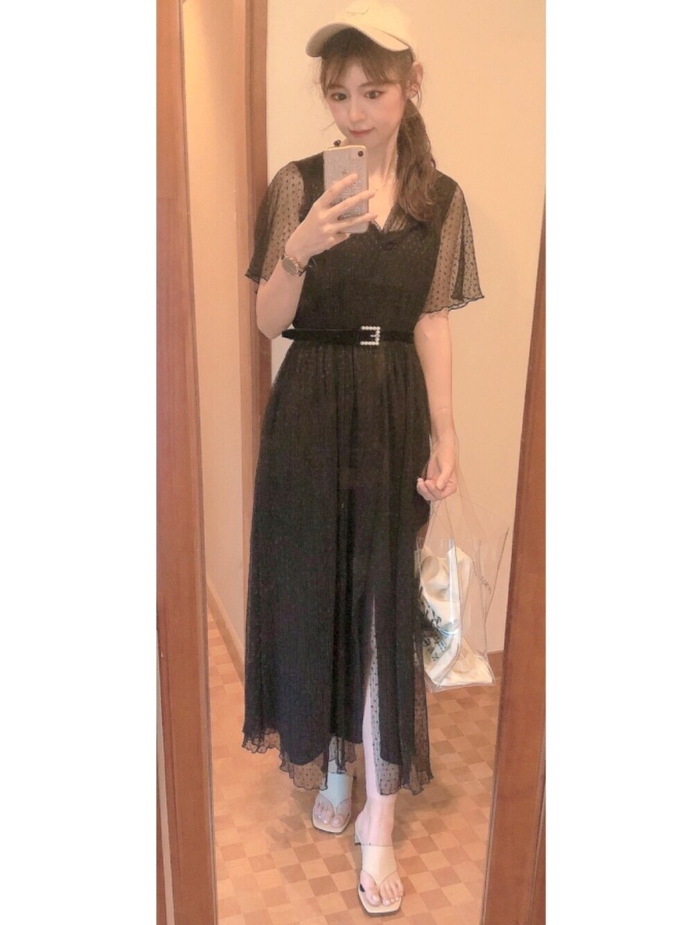 閲覧ありがとうございます😊🌹 レースの黒ワンピースにキャップ🧢とサンダル👡でカジュアルに外しコーデです✨✨ まだまだ暑い日が続くので、体調に気をつけてファッションも楽しみましょ~♩☺️