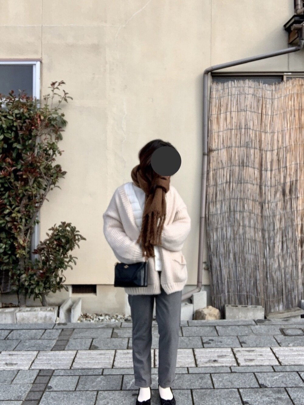 今日のコーデ このカーディガンゆるっとした感じで好き🤎 まだこのカーディガンだけで外出ると寒いから中にウルトラライトダウン着てます笑 このパンツは親が履けなくなったらしくて貰ったもの🙂