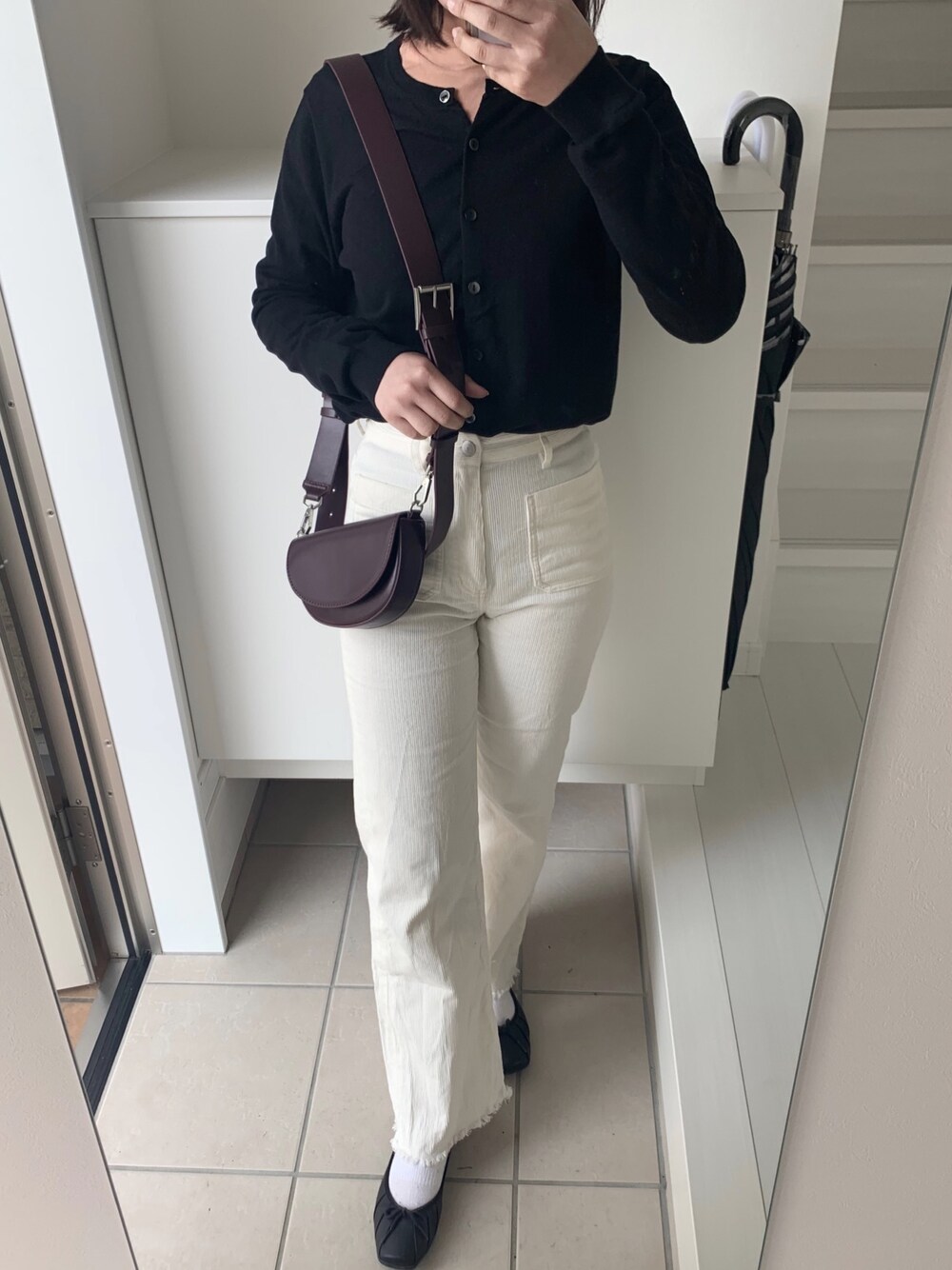 カーディガン全部閉めて、パンツにインして着るのもかわいい❣️