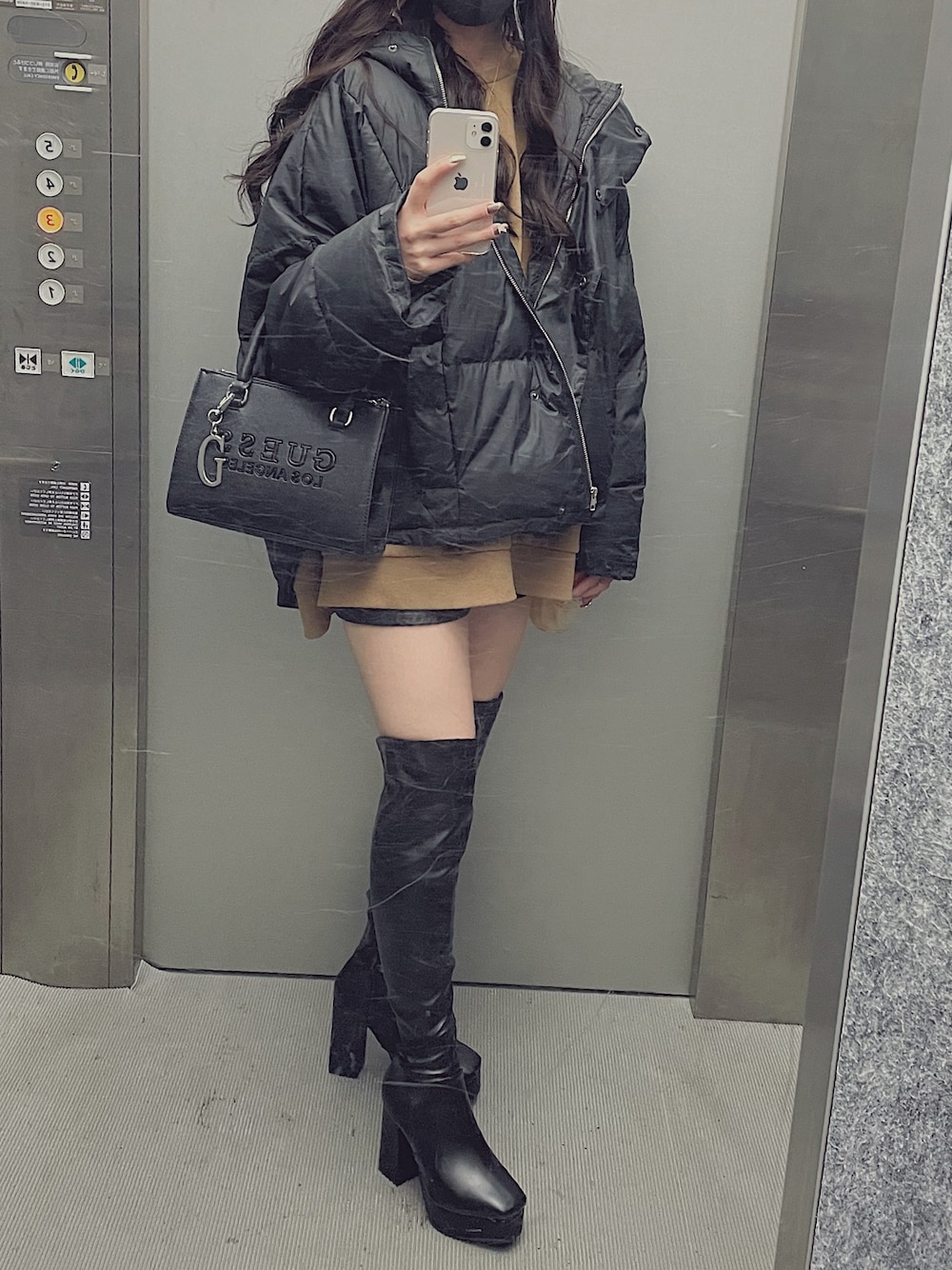 オーバーサイズにニーハイブーツがスキ🖤