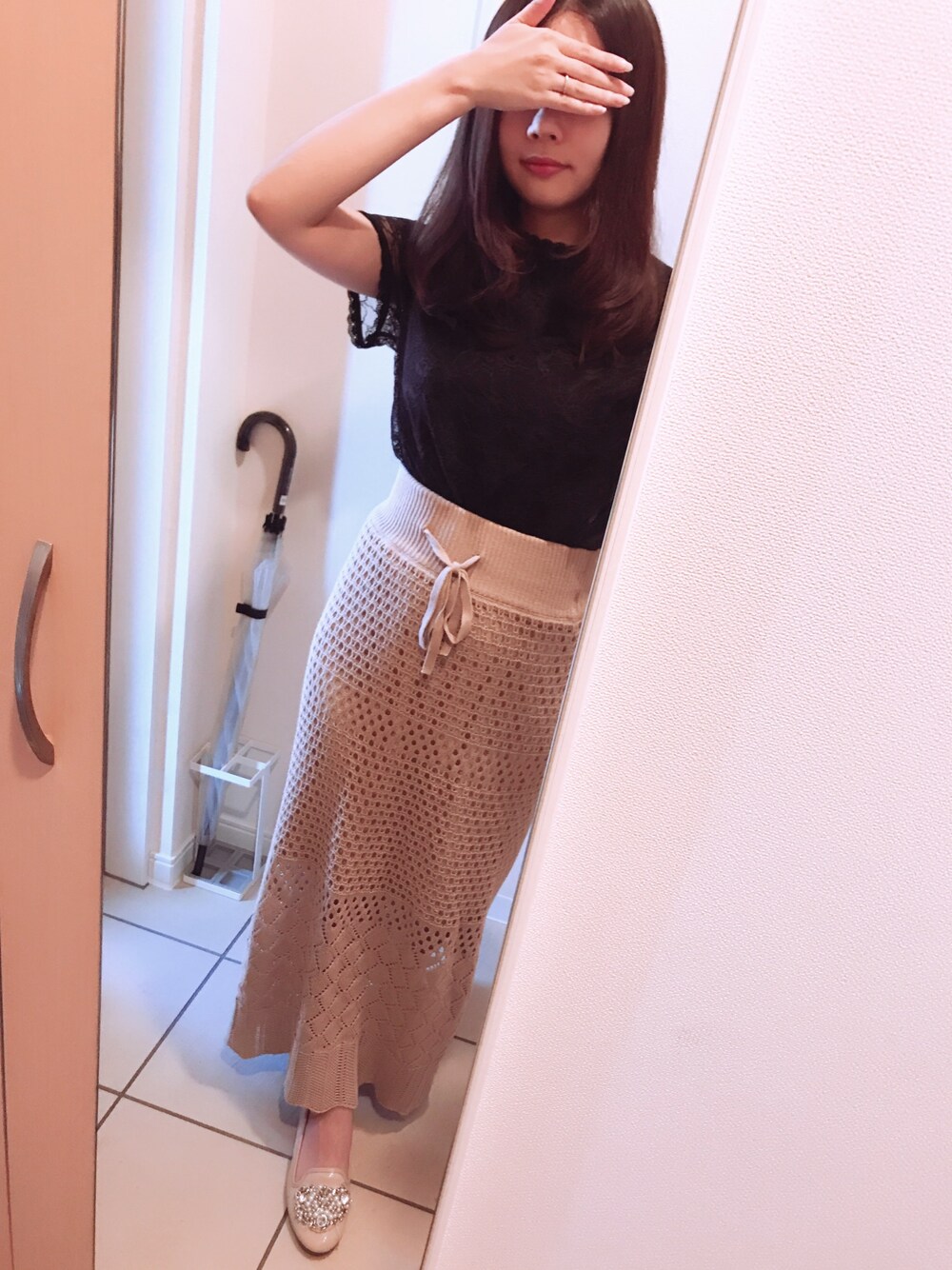 透かし編みスカートお気に入り✨ シンプルにレースのカットソーと合わせてみました!