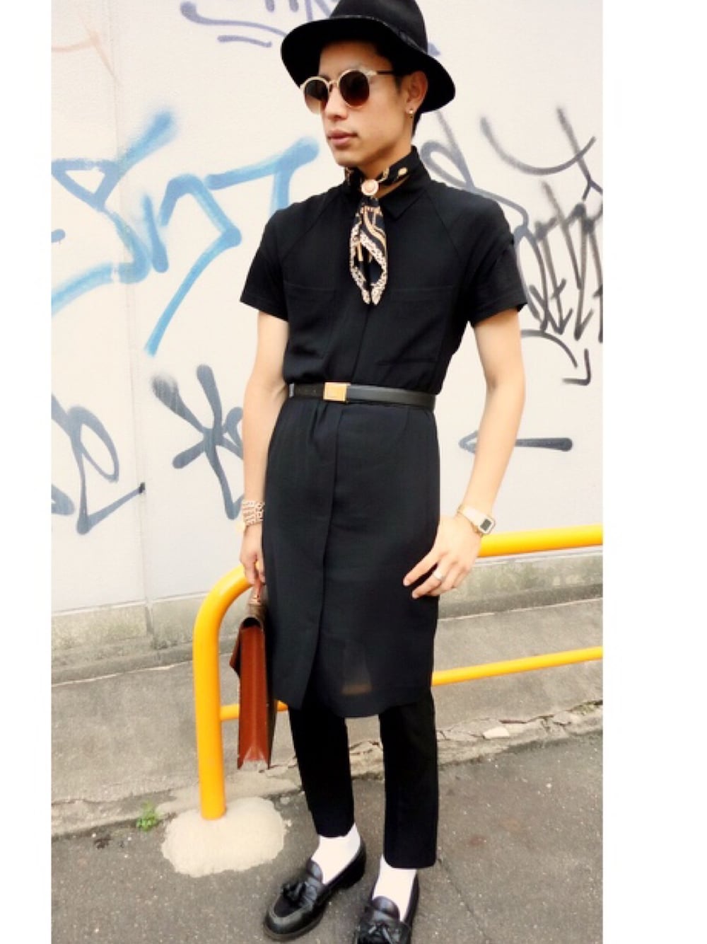 以前、名古屋大須にてスナップしていただいたときの。 レディースのワンピースですが、ドレープが出て光沢感もありお気に入りです。