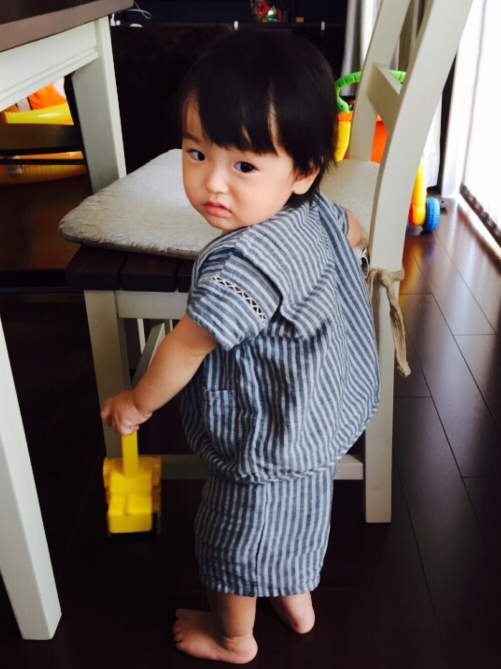 去年ですが甚平スタイル^^無印さんのは軽くて涼しくて柔らかくて子供も楽そうでした^^サイズアウトしたから今年も買わなきゃ!