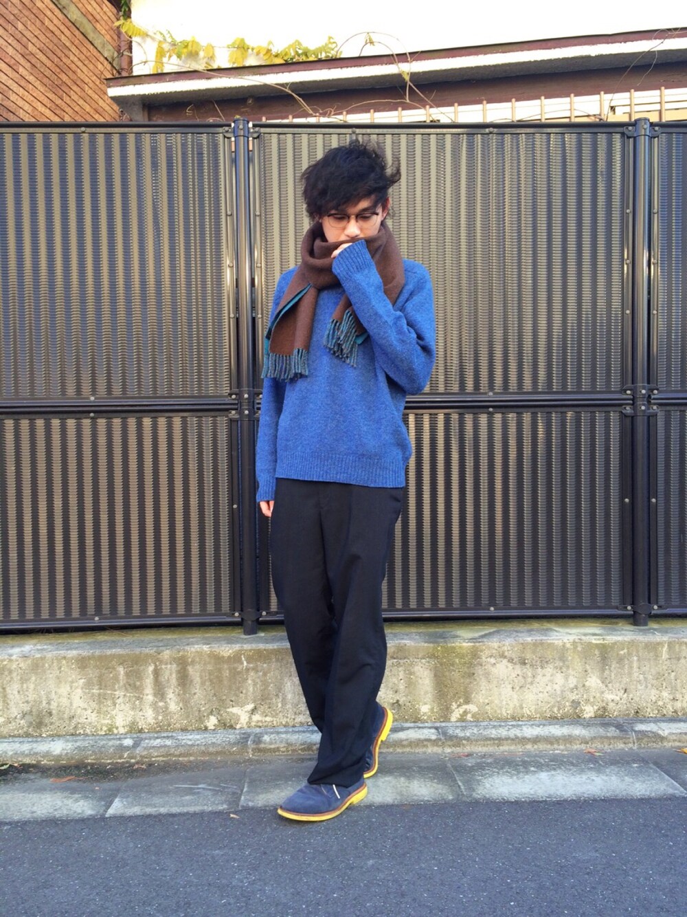 こんばんは〃 今日は寒かったのでアニエスのマフラー巻きました✌︎ 表は茶色の落ち着いた色味 裏にはきれいな青が潜んでる 粋なマフラーです チラッと見えるくらいが風情かな。 ではでは☆