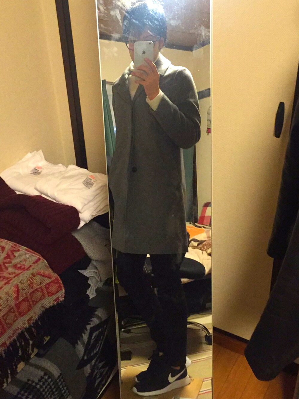 初めてステンカラーコートを買ってコーディネートしてみました♪( ´▽`)