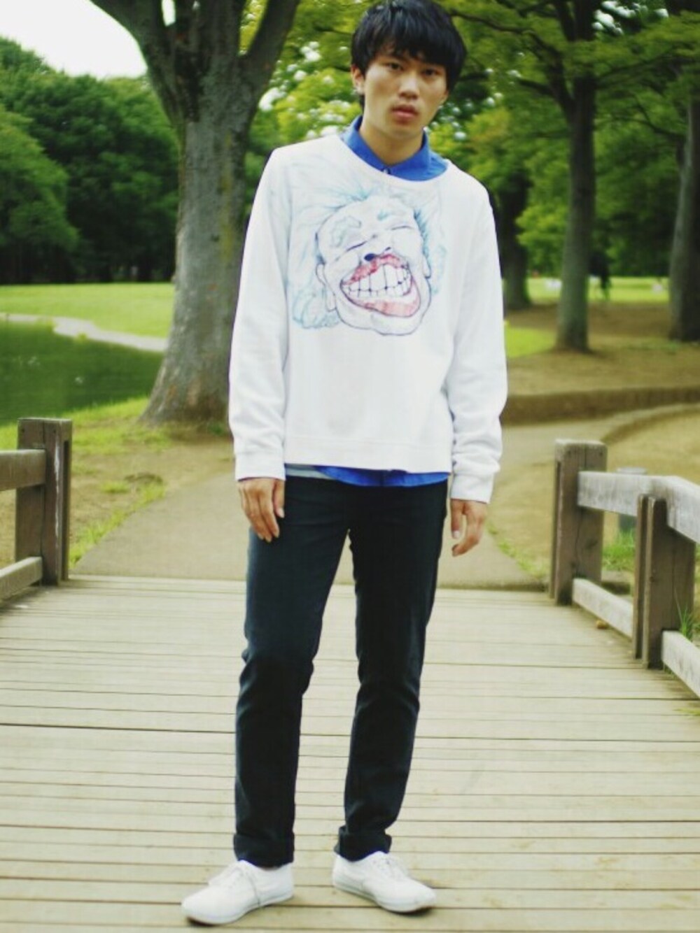 スエット 仙台のuthaで9600円 中に着た青いシャツ 地元の古着屋で2000円