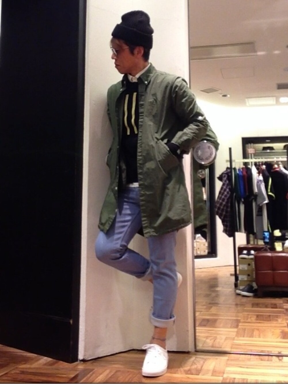 まだまだ寒い日が続いてますが、もう気分は春服ですネ‼ FRED PERRYらしいデザインの裾がフィッシュテイルのロングシャツが登場‼ 僕もそうですがロング丈が気になる、って人も多いと思います。 コットンセーター➕シャツにコート感覚で羽織ってもOK‼着こなしの幅が広がるはずです^ ^ ニットキャップ赤にすりゃ良かった〜>_< 次回はインナーバージョンをアップさせていただきます♪
