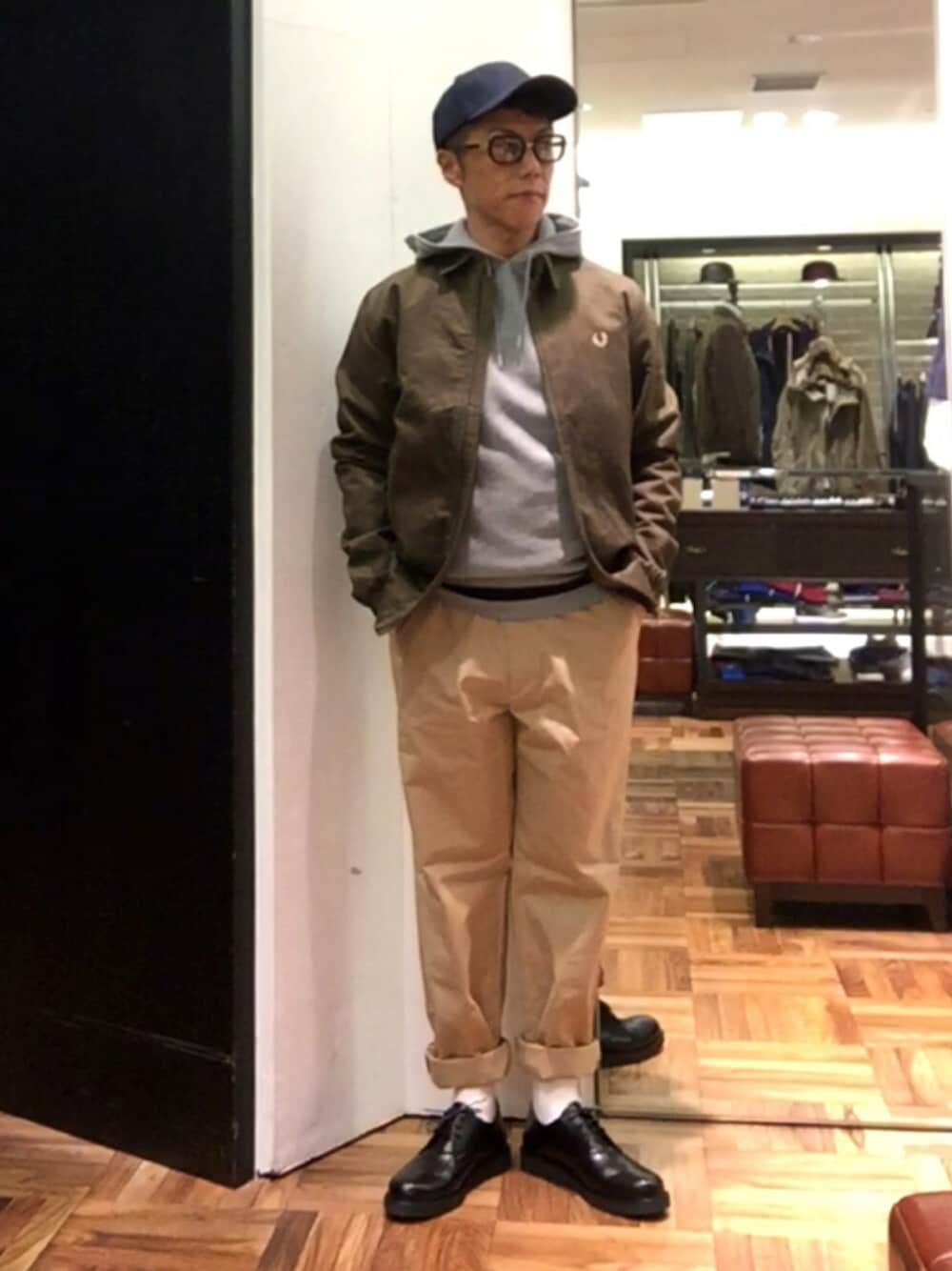 こんにちは😃 今回は今シーズン人気のカラーであるカーキを使ったスタイルをご紹介します🎵 タフで軽量なカバンジャケットはヴィンテージワークウェアスタイルをイメージさせれています。初期のフレッドペリーのアーカイヴを元にデザインされ、生地はコットン、裏地にはライナーを採用しています。そして襟裏と裏地にギンガムチェックを施したこだわりのデザインです。 インナーには新しいトップススタイルとして展開されたフード付きスウェットシャツを合わせて😄 ローレルロゴ入りのテープが首元内側に使われ、ポケットはカンガルータイプ、ブランディングは過去のアーカイブにも使われていた月桂樹ワッペンが使用されてい ます。袖と裾のラインが効いてますッ‼️ パンツは個人的に好きなシルエットのワイドパンツを合わせ裾は白ソックスをチラ見せで👍😁 キレイ目なワークスタイルです✨✨