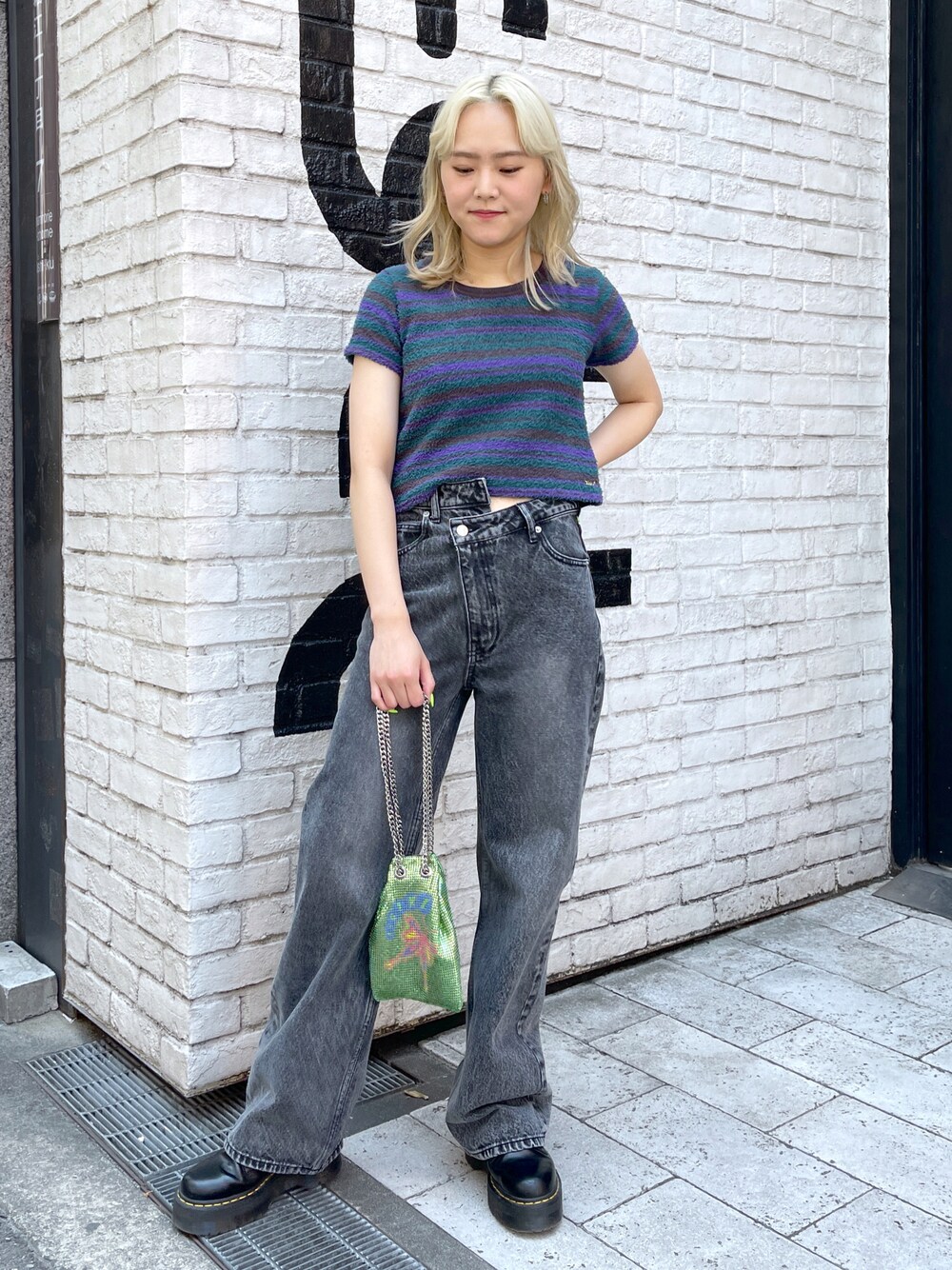 出村彩乃(X-girl大阪)のTシャツ/カットソー「STRIPED TERRY CLOTH S/S BABY TEE/マルチボーダー パイル地コンパクトTシャツ」を使ったコーディネート