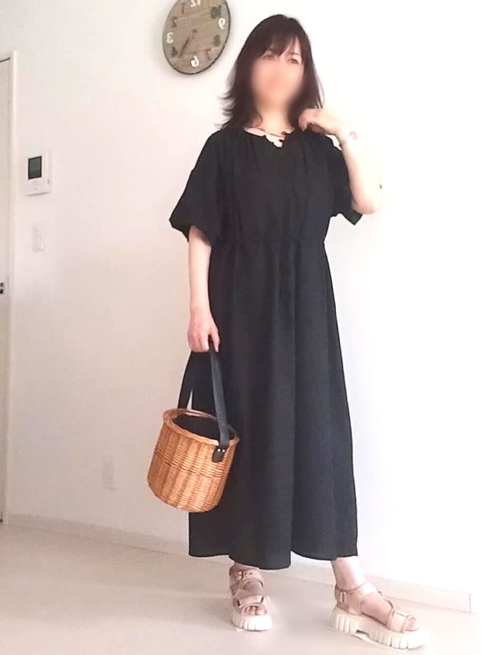 ご覧いただき有り難うございます😃 真夏になってくると…ワンピが 楽で好きです😊 暑いのは苦手ですが…😥 このブラックワンピ、首周りもスッキリで 袖もぽわんとしてバックスタイルも 大人可愛いデザイン! 足元は履き心地も良く、凸凹ソールが 可愛いライトベージュのスポサン合わせで 涼しく😌 スポサンて最近、よく履くけど 割りとなんでもコーデに合わせられて いいですよね🤔