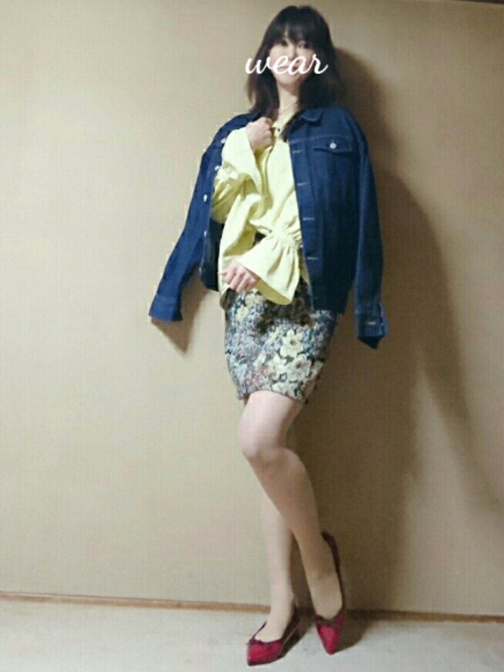 ご覧いただきありがとうございます😊💖 4月に入ったけど…まだまだ寒いですね😂 早く暖かくならないかなぁ☺ 今回は最近買ったばかりのイエロー ブラウスがメインのコーデ💕 このブラウス袖がカフスデザインで めちゃ可愛い😍 しかもバックストラップがあって バックスタイルも一枚でも様になる感じ✨ リボン🎀ネイビーフレアスカートとも 合わせたけど…別アレンジでupします😅 悩み中の時のお座りポーズを小窓に😆💦 で…結局 よく登場するゴブラン花柄スカート 合わせでしっくり来ました😉 そしてビッグGジャンに大好き赤バレエ パンプスで組合せ春っぽく🌸 後、ちょっと撮り方変えました~😉 ポーズって本当難しいーー😂😅 いいね save follow コメント いつもありがとうございます🙏💖 とても嬉しいです😻💕