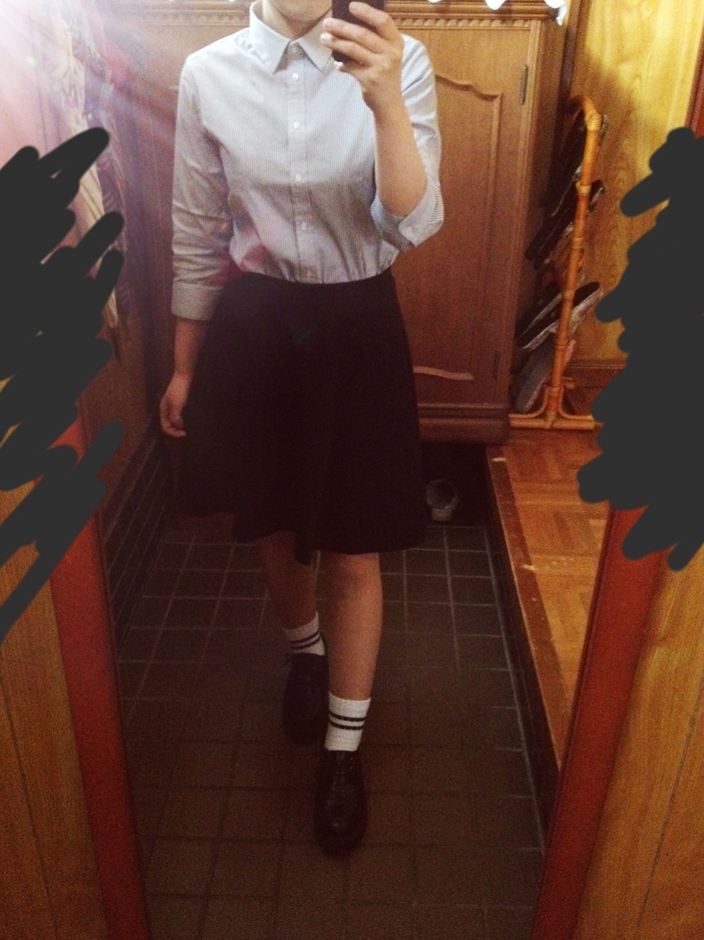 ブラック系のその他シューズを着用したレディースの春コーディネートの1枚目の写真