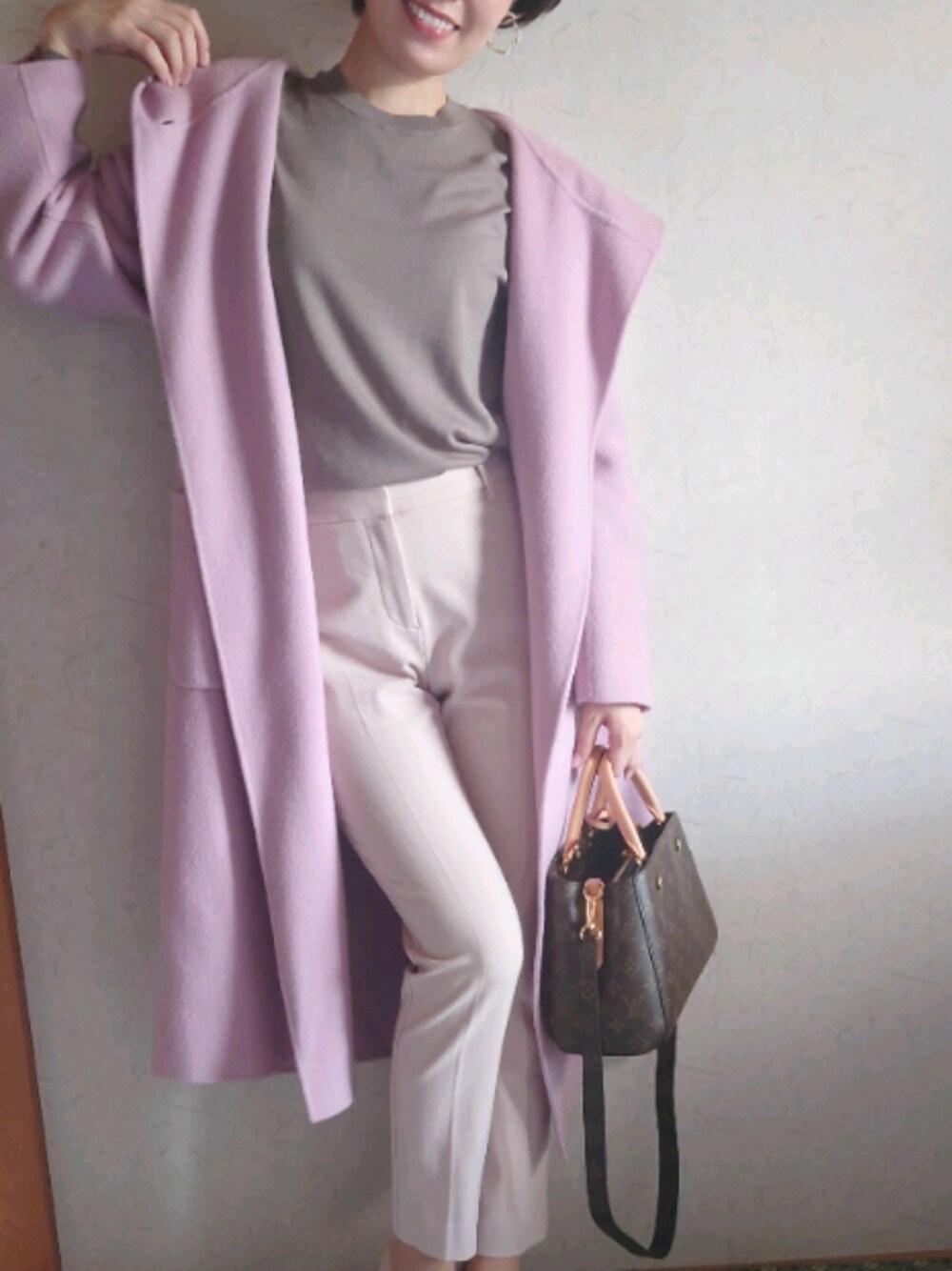 モーブピンク♡ユニクロ新作ニットはモカで♡お洗濯しても毛玉出来ず★パンツはプラステで淡いピンクに大人でもかわいくエレガントに♡