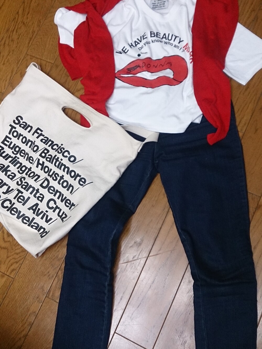 SLYコーデにしてみました💕 赤を差し色に~(笑)