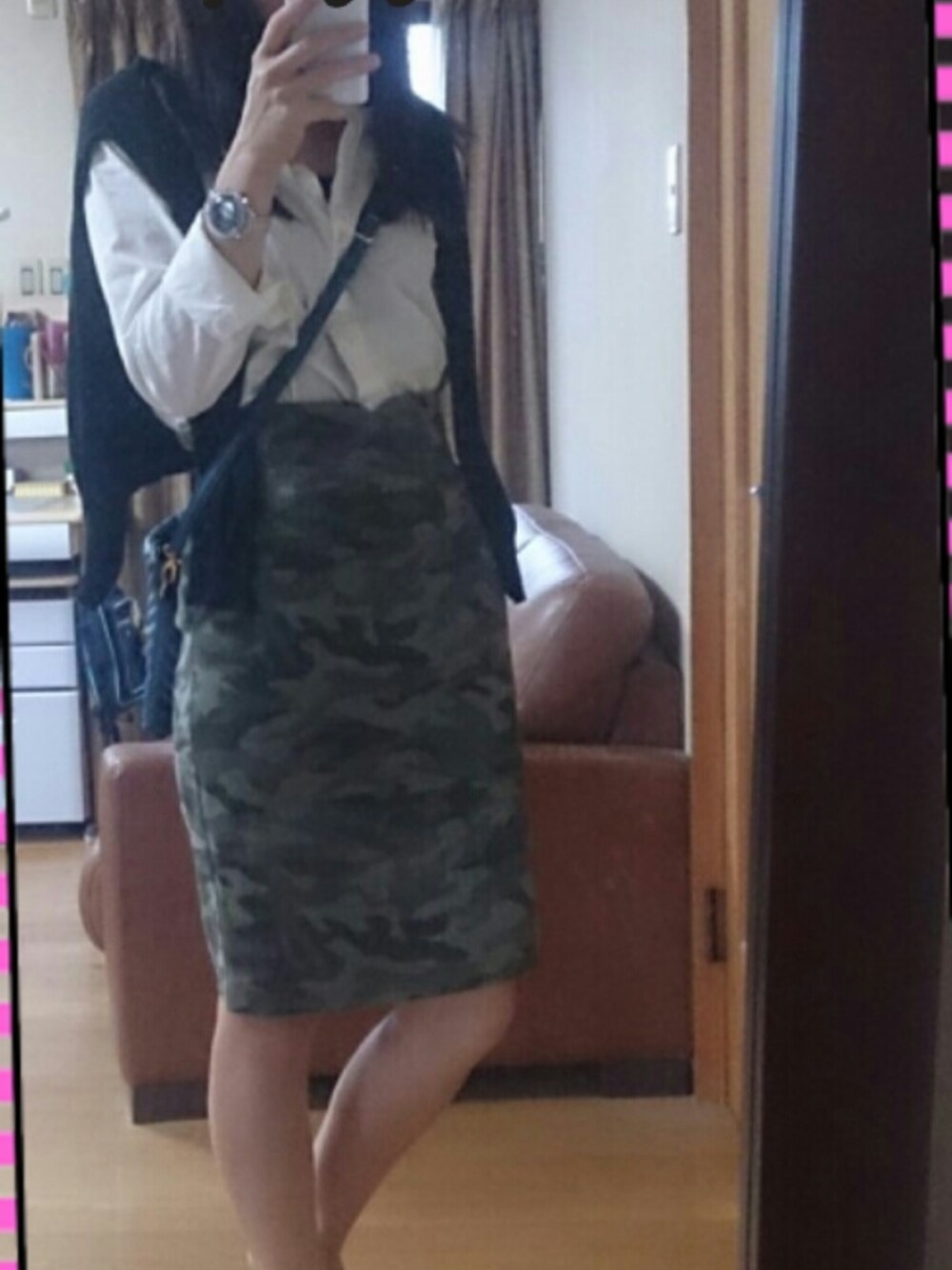 ♡カモフラージュスカートのコーデです (*´˘`*)♡ 写真では分かりにくいですが、形がとってもキレイなんです♪ タイトだけど、ストレッチが効いてるので動きやすいです ♡笑