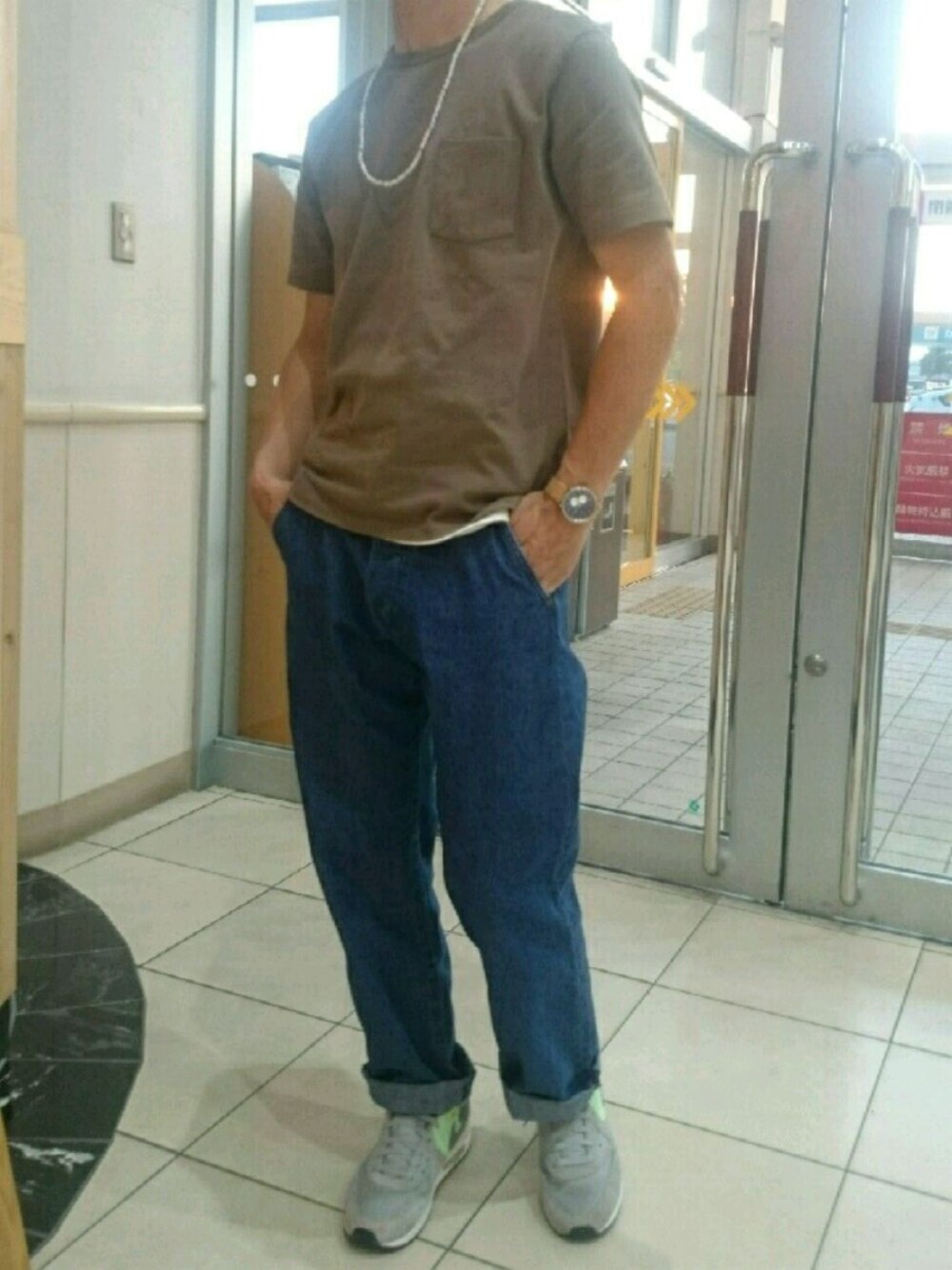 普段着ないカーキ色のTシャツにチャレンジ! 生地も暑くて着心地最高!
