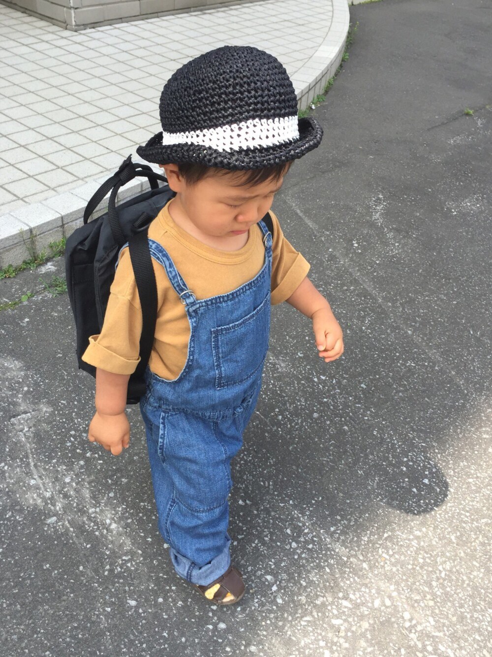 見て頂きましてありがとうございます😊💕 今日も暑いーーー。昨日は30℃くらいあったみたいです💧今日も28℃の予定。いやもう越してそう💦北国でも暑いーー。 かなり前にオールドネイビーで買ったサロペット。やっぱり少し大きいけど着せてみましたー。 うーん、でもこのサイズ感で着せても可愛いようなー😆💕 小窓には家に入らないとギャン泣きしてから、暑くて休憩してるところを。イヤイヤ期ってたまらんなー😭😭😭