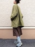 ピンク×グリーンの春らしいカラーで合わせてみました! カットソーには袖先部分に刺繍があしらわれて普段使いに最適です◎