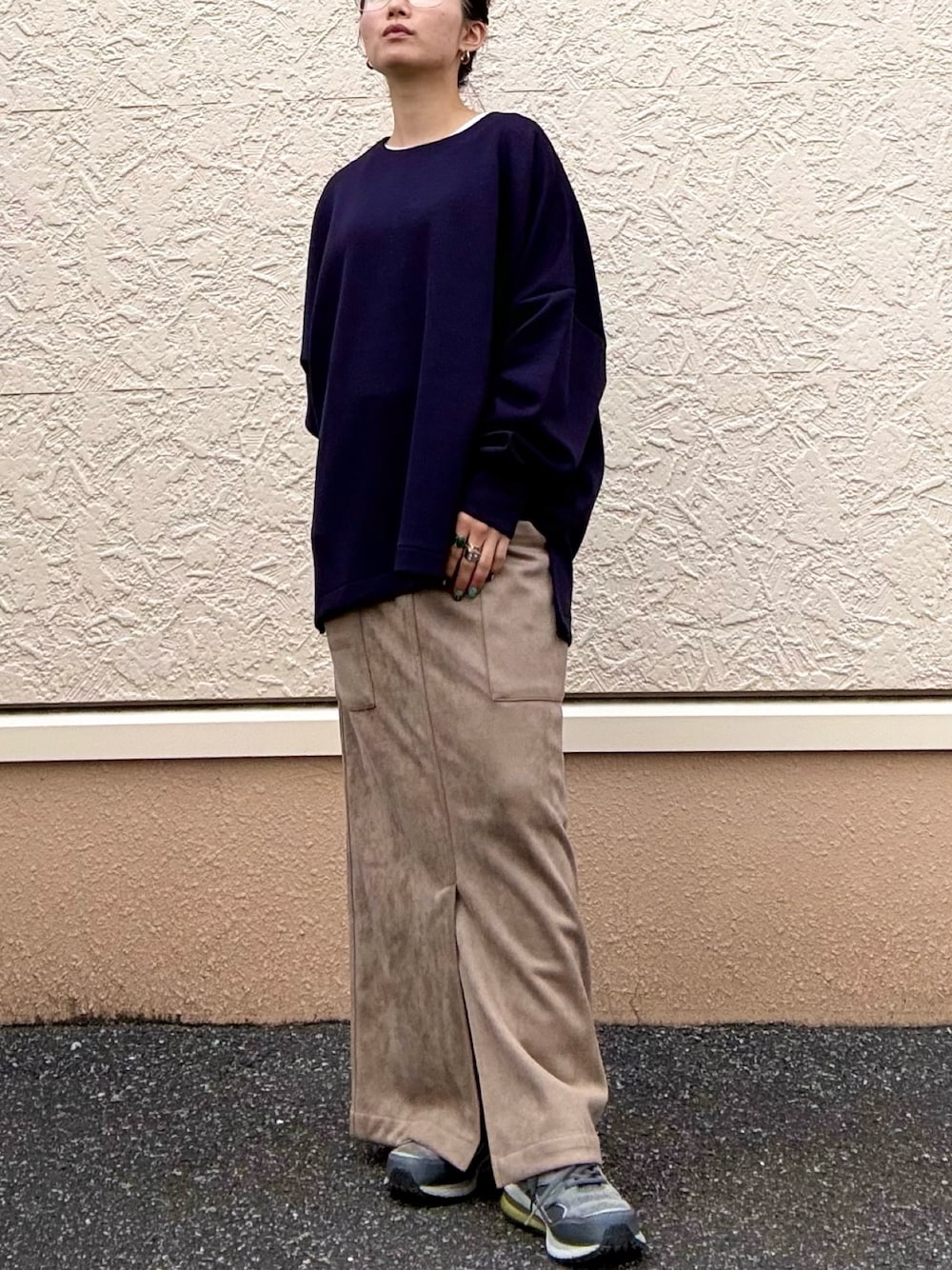 後ろのジッパーがポイントのプルオーバーに、普段使いに最適なこちらのスカート! 春に最適なアイテムです◎