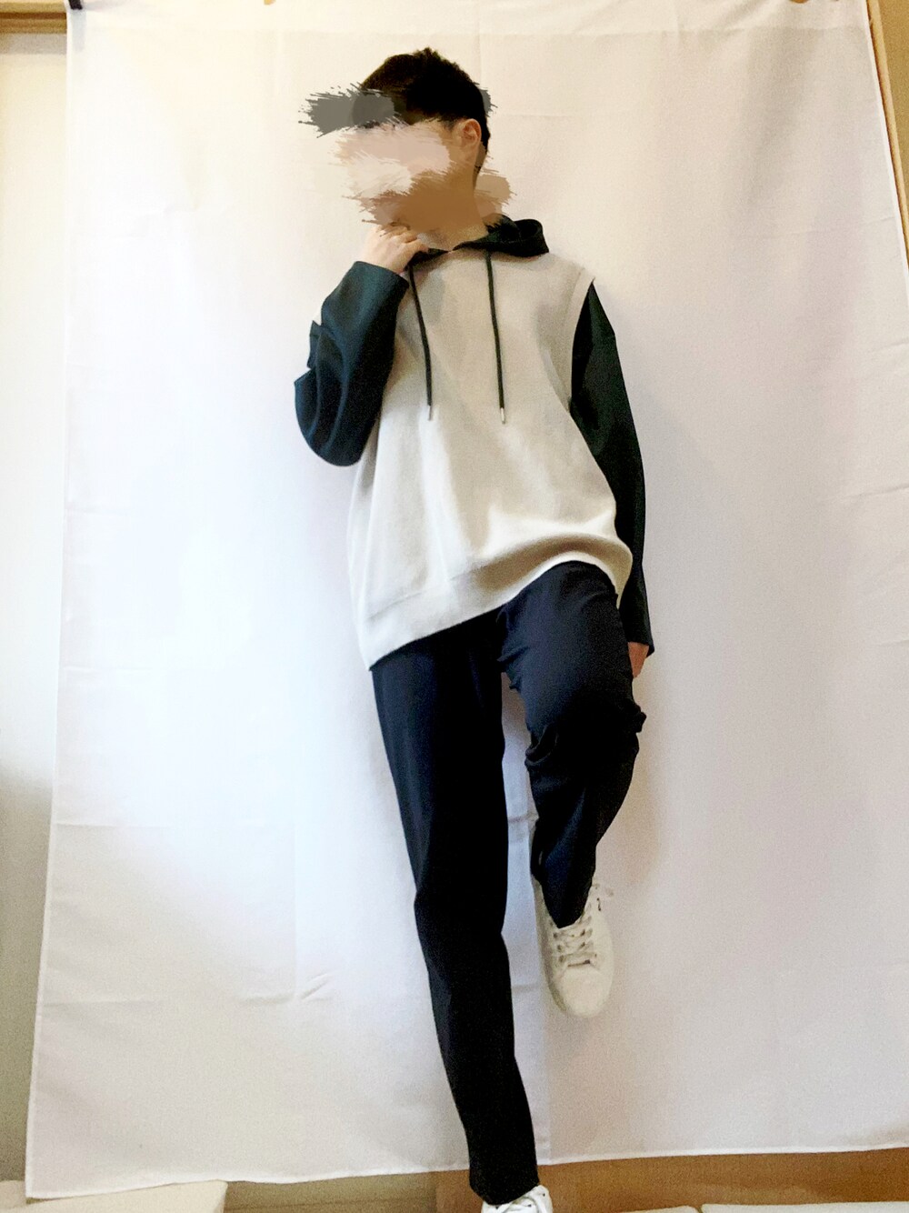 シンプルコーデ 今日はニットベストとパーカーで組んでみました