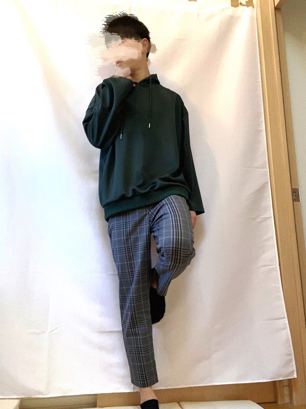 春コーデ 今日は、パーカーとチェックパンツで組んでみました