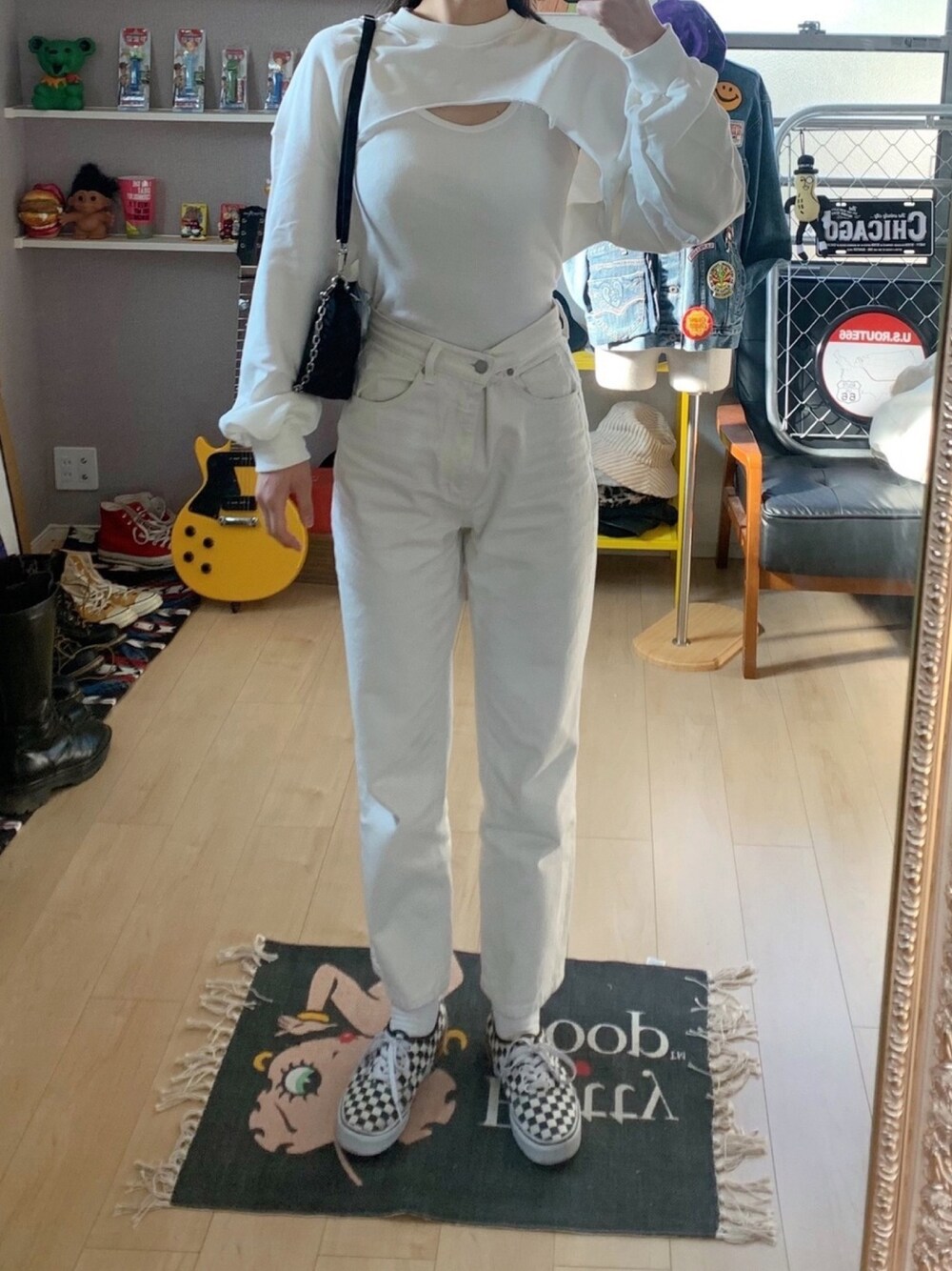 アームウォーマー2個目✌️かわい〜 本日もホワイトコーデ🦢🤍🤍 ベルトなしウエスト👖詰めしてる🤣