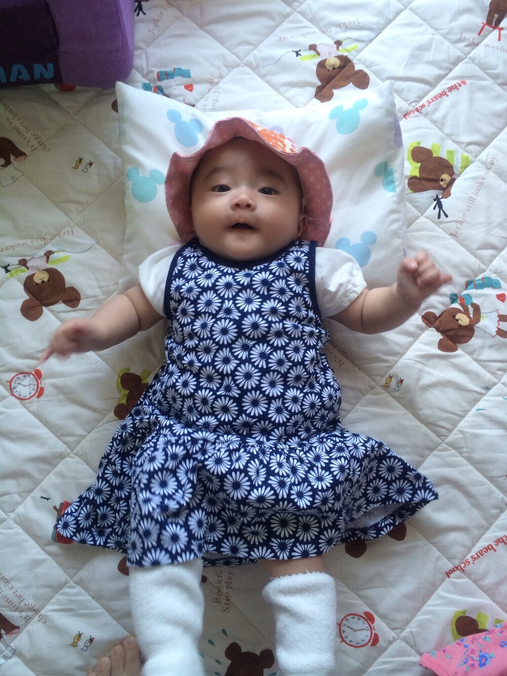 帽子:赤ちゃん本舗 ワンピース:H&M Tシャツ:赤ちゃん本舗 靴下:赤ちゃん本舗
