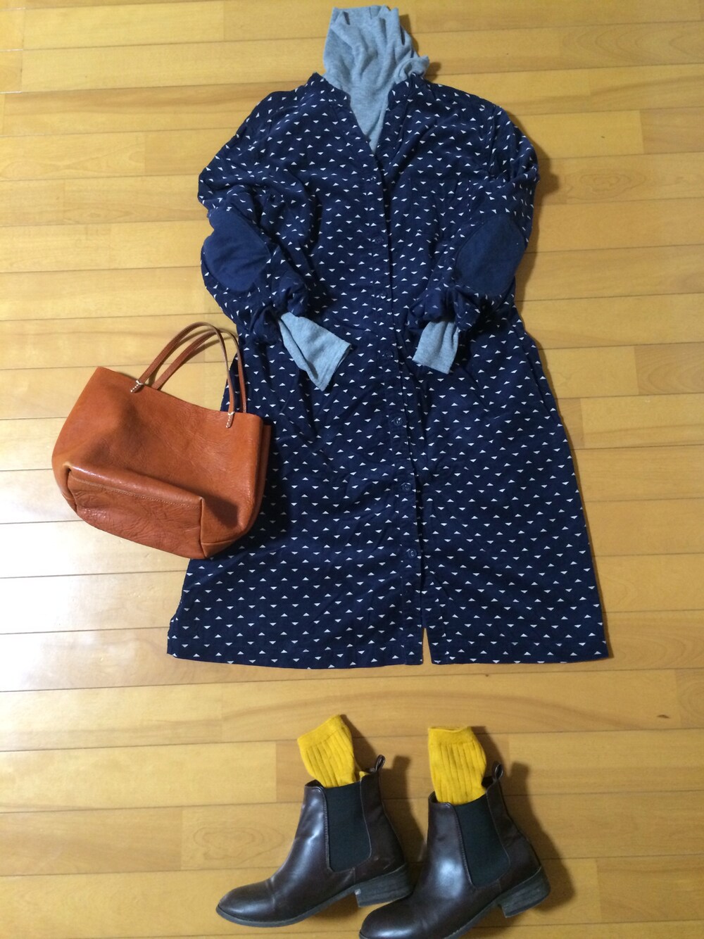 シャツワンピの着回し♫ これワンピとして着ても 可愛い♡ ドットに見えるけど三角柄♫