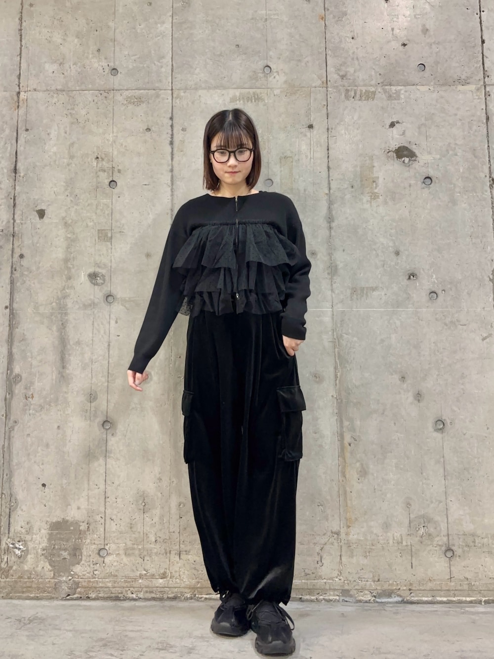 トップスは定番人気アイテムの新色です! ブラックにドット柄とすごくかわいい⚫️ ベロアのカーゴパンツと合わせ、ガーリーさをトップスで出し、パンツでカジュアルにしてみました!少し違うジャンルのアイテムを合わせても、生地感などで可能性は無限です✨ どんな形のスカートでも相性抜群です!!!