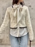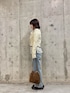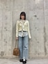 甘めなトップスにデニムアイテムを合わせ、甘めカジュアルなコーデに🌟 KBFのカーディガンは、ブラウンのラインが可愛く、胸元がホックのため着やすいです! 中のボウタイブラウスは、取り外しができ、シチュエーションや気分によって着回し抜群のアイテムです!