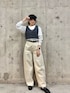 チノパンツや小物でカジュアルに👀 バレルレッグチノパンツは丸みを帯びたシルエットで、ワイドが苦手な方や腰回りが気になる方にぴったりです!!私は今回丸みをより強調して出したかったのでLサイズを着用しています! グラフィックTに、1アイテムプラスで2wayのできるベストで一気におしゃれに🙌🏻