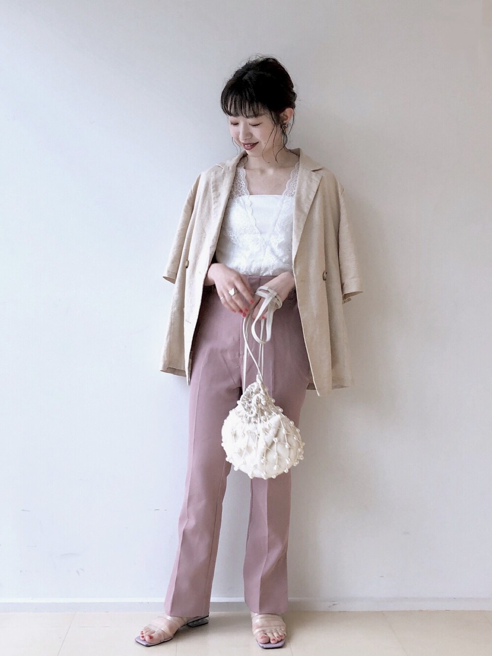 やっすー(mystic EC)のテーラードジャケット「リネン混半袖ジャケット /セットアップ」を使ったコーディネート