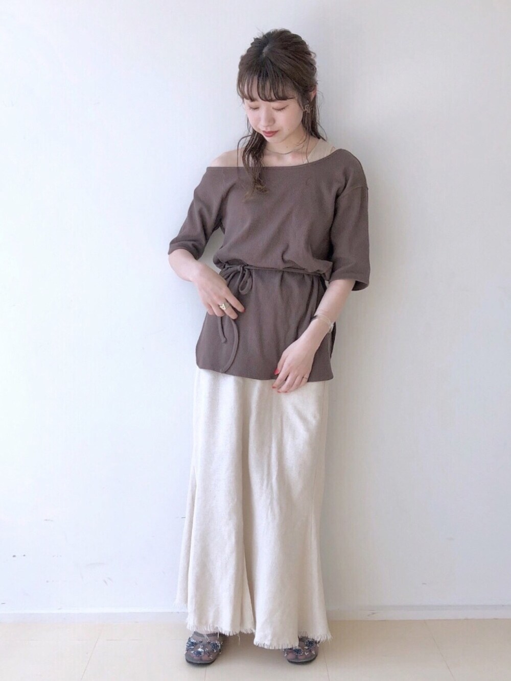 やっすー(mystic EC)のTシャツ/カットソー「ワンショルリブトップス」を使ったコーディネート