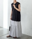 【左スタッフ安江着用】 【tops】 着用サイズ:フリー サラッとした夏も着て頂ける素材のニットなので、長いシーズン着て頂けます!とても軽量化素材なのでストレスフリーです!また秋になれば、ベストとして、ロングTシャツやシャツにレイヤードして着ることも出来ます。 【bottom】着用サイズ:フリー ウエストもゴムが入るので楽に着て頂けるスカートです!ランダムなティアードデザインが、一歩差をつけて着れますよ◎この夏にストライプ柄はマストでオススメです。 【shoes】着用サイズ: ブラウン37(普段 23.5cm) 軽くて、疲れにくいサンダルです!クリアなので、ペ二キュアでカラーを入れて遊びたくなるようなサンダルです。コーディネートにも、合わせやすくて私も今期買って良かったシリーズです!