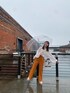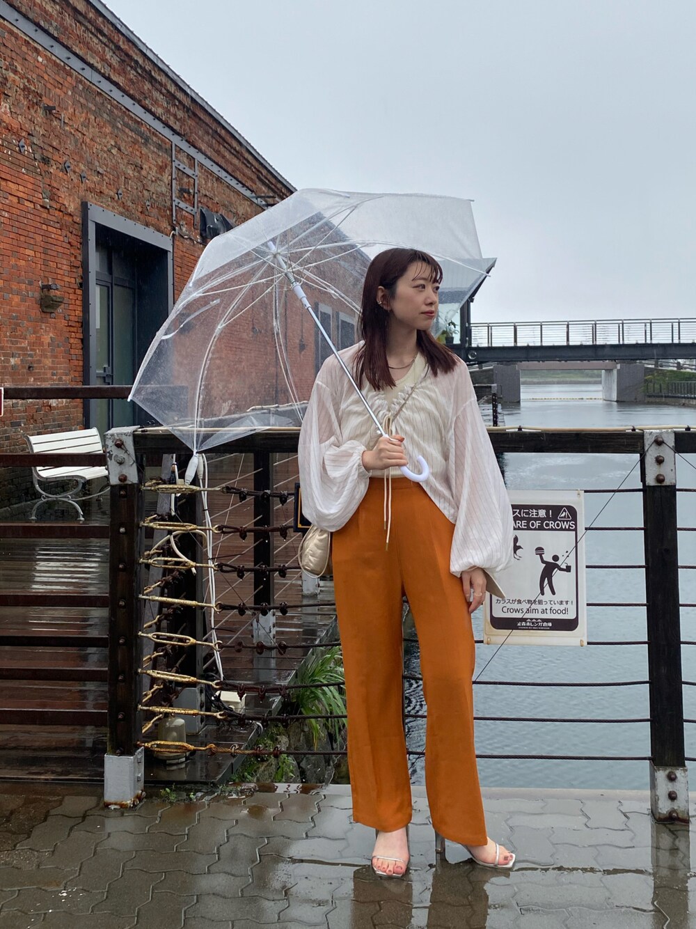 雨の日のコーデ☂️ オレンジのスラックスで 気分も上げます!