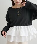 ヘンリーニットは、 軽い着心地で長い時期楽しめそうです! フリルがドッキングされていて、 一枚で映えてくれるアイテムです!