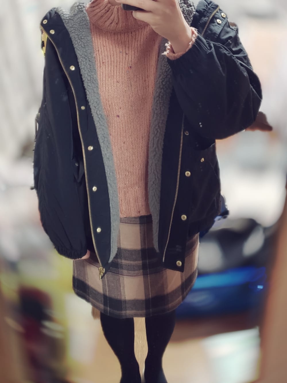 寒いので首周り死守したい。 ボア付きのマウンテンパーカーは暖かいけど、コートほど重たく見えないからよきよき💛