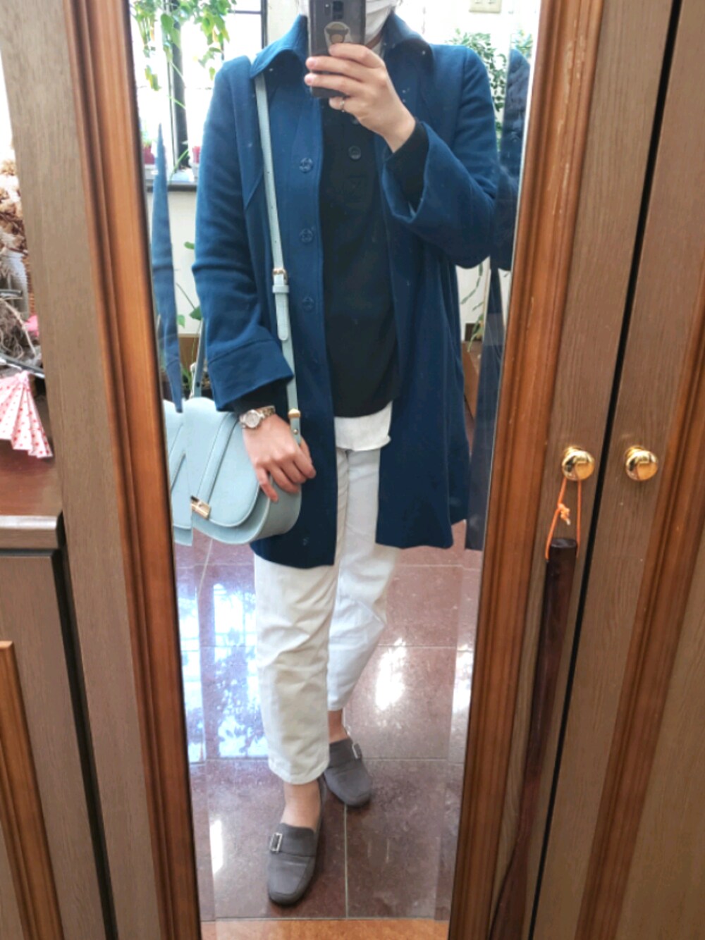 知人のおばさまの御下がりのコート 軽くて暖かい、きっといいものなんだと思う 少しサイズが小さくて、中身薄着でもいい季節になってきてやっと着られる☺️