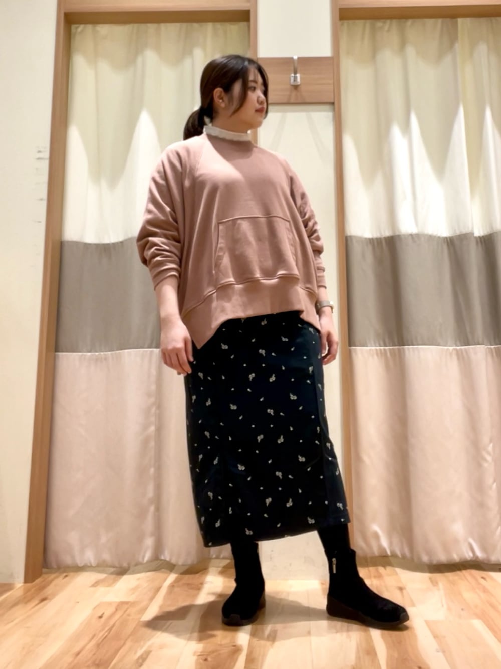スウェットを使用したナチュラルガーリーなコーデです🌸 お尻まで長めな丈感のスウェットはゆったりなデザイン☺︎♩ 大きなポケットはスマホなども楽々入るサイズなので、お出かけや日常でも使いやすそう✨ ピンクに近いブラウンは甘過ぎない絶妙カラーとなってます🩷 ボーイッシュな印象もあるスウェットに あえてキレイめなスカートを合わせてみました◎